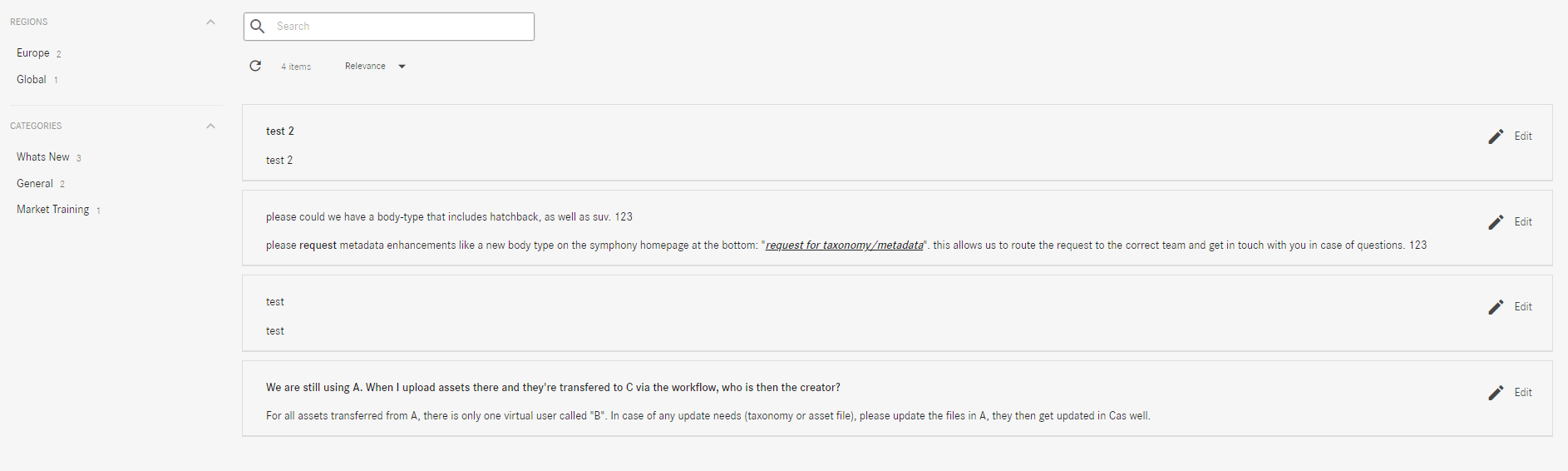 The ask was from the customer for an FAQ page for users. I created a new entity schema for this which consisted of:
