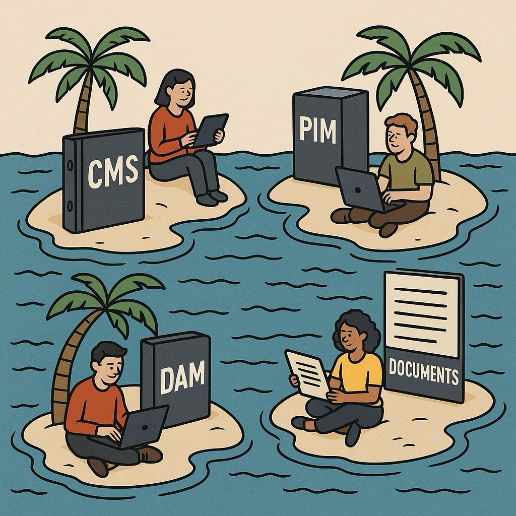 When you index CMS items, DAM assets, PIM data, and documents separately, you create islands.