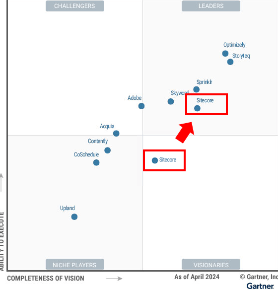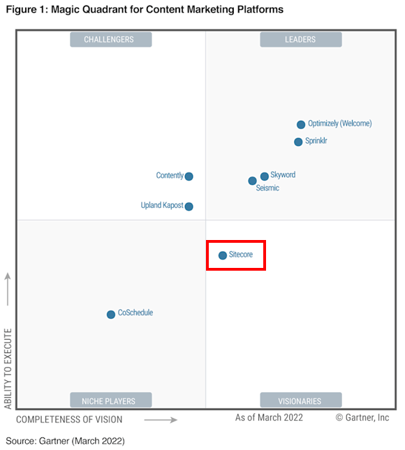 When Gartner published its Magic Quadrant for Content Marketing Platforms in March 2022, Sitecore sat in the Visionaries quadrant. Strong on vision, still building execution credibility. A platform with clear potential but not yet the full package.